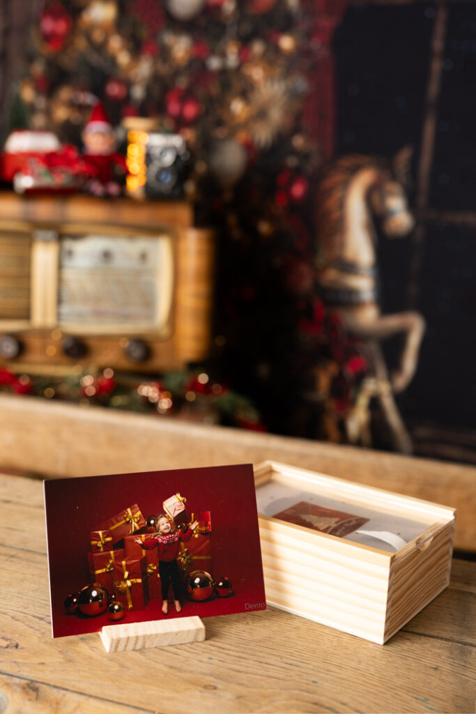 10 Tirages en 20x15cm (3 photos de séance de Noël + 7 supplémentaires) qui vous seront envoyées après retouche en format numérique (couleur)